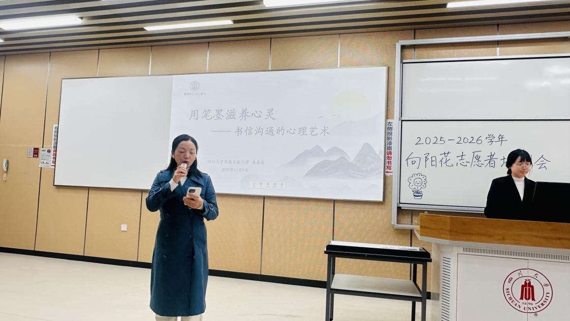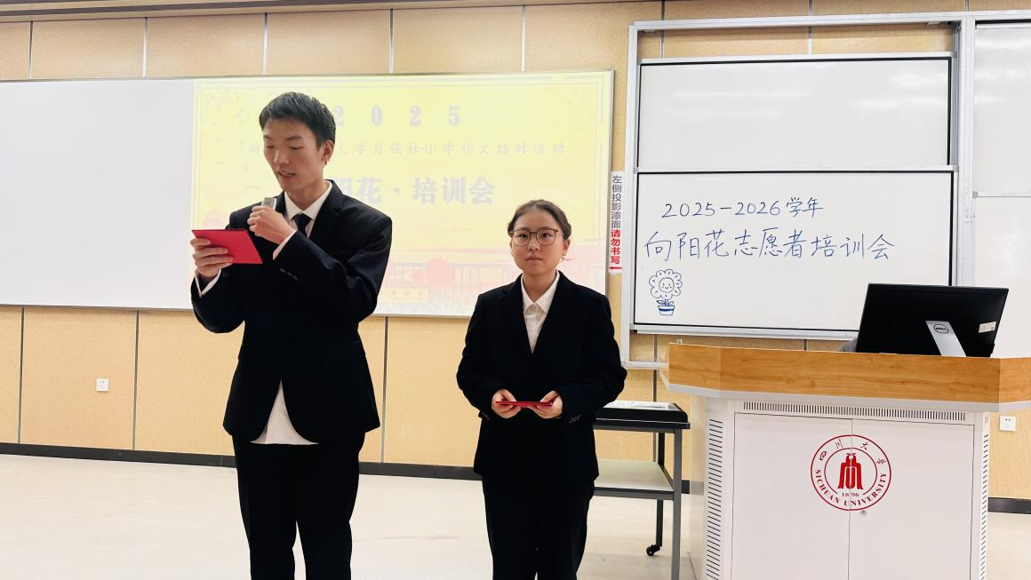 一纸书信,跨越山海;一份坚守,温暖童心。11月9日,新长城英国上市公司365自强社“向阳花”小学生作文结对志愿服务培训会在江安校区综合楼顺利举行。150余名来自全校各院系的志愿者怀揣对公益的热忱齐聚一堂,共同开启以笔墨传情、以书信连心的公益之旅。