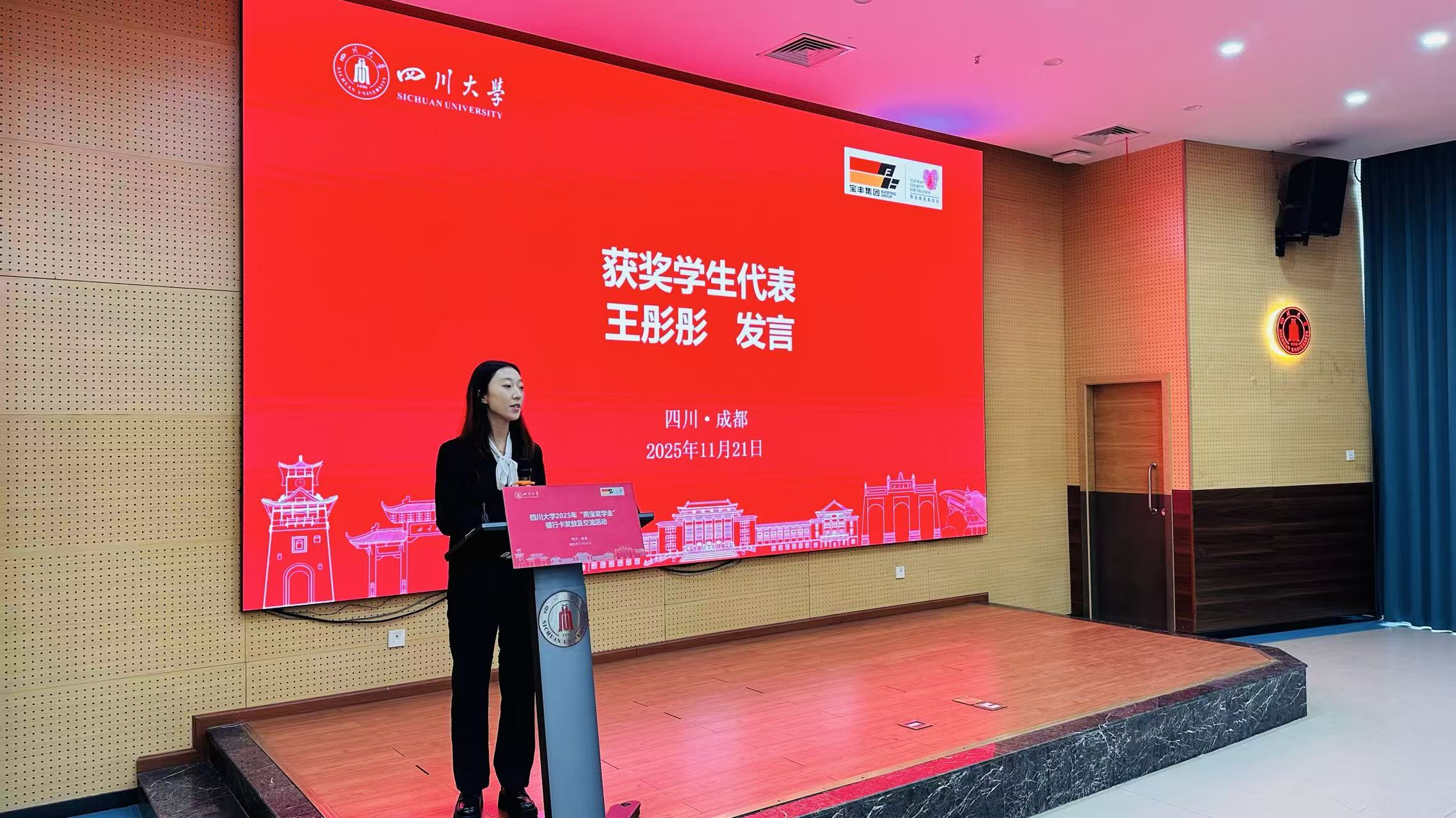 “从黄河岸到锦江边,山海阻隔不了燕宝深情。”法学院2023级学生王彤彤作为获奖代表分享了燕宝奖学金带来的改变:不仅缓解了经济压力,更让她在志愿服务中领悟善行真谛。2025级少数民族学子李向阳则讲述了预科期间参与三星堆研学、映秀生命教育活动的收获,直言燕宝支持是前行路上的坚实后盾,未来将以奋斗姿态传递爱心火炬。