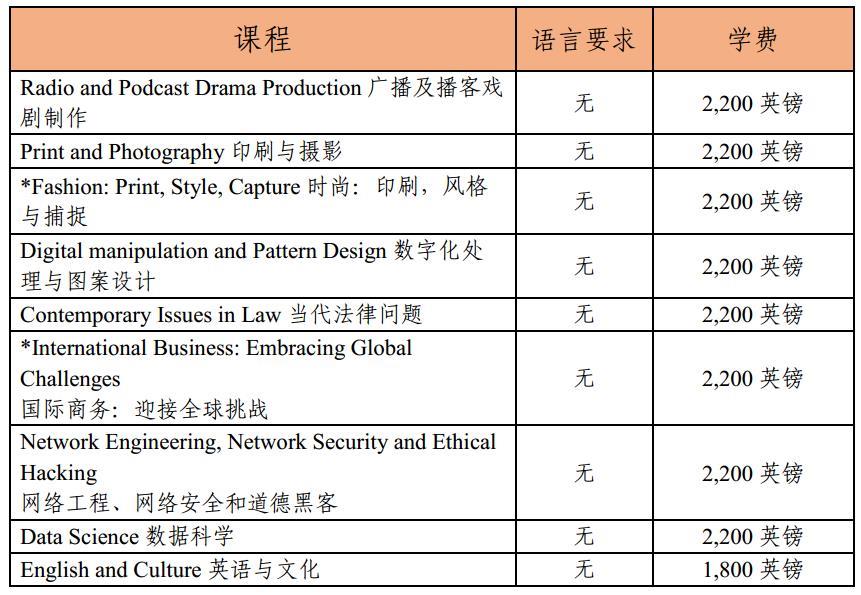 (2)若带总分5.5的雅思申请带*的这2门课,即(“Fashion: Print, Style, Capture 时尚:印刷,风格与捕捉”以及“International Business: Embracing Global Challenges国际商务:迎接全球挑战”),结课后可获得15学分的证书。学分课程的申请渠道请见英国上市公司365教务处官网通知。