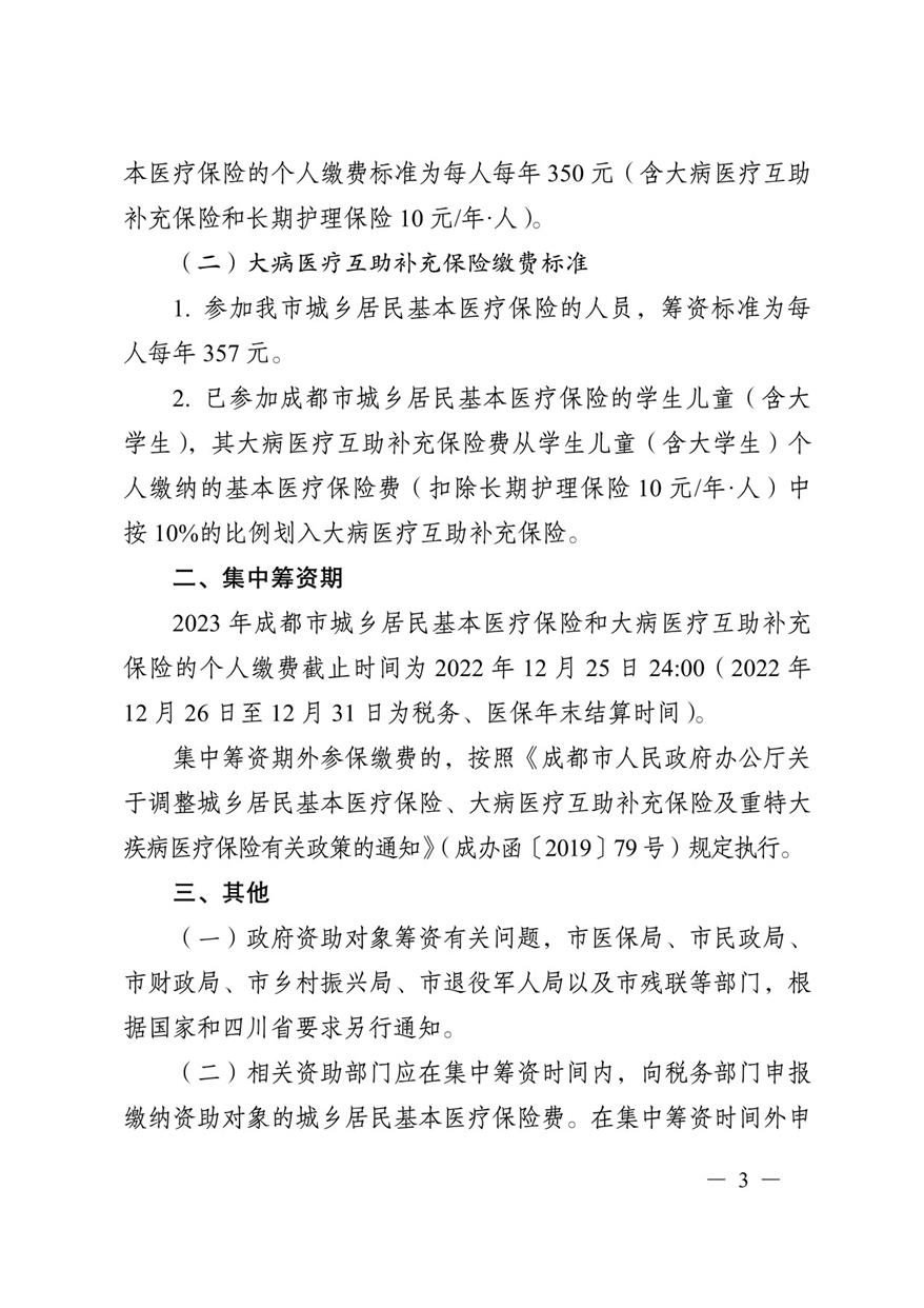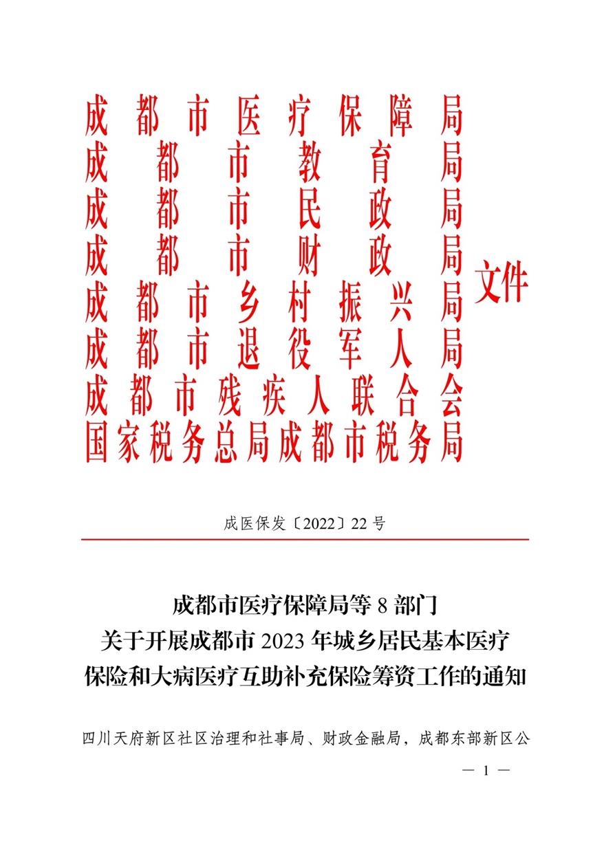 附件:成医保发〔2022〕22号 (8联合)关于开展成都市2023年城乡居民基本医疗保险和大病医疗互助补充保险筹资工作的通知