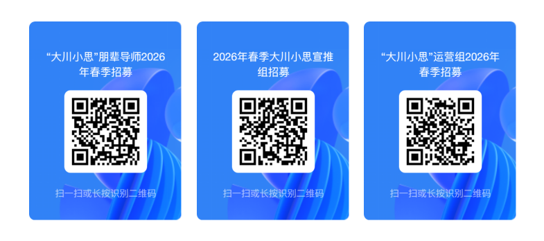 1.如有意向报名或对招新内容存在疑问,扫码加入QQ群“大川小思2026春季学期招新对外答疑群”;