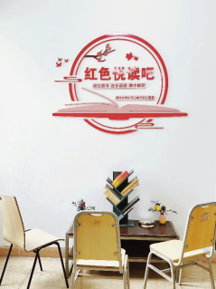 红色悦读吧logo及江姐班图书角“红色悦读吧”一角