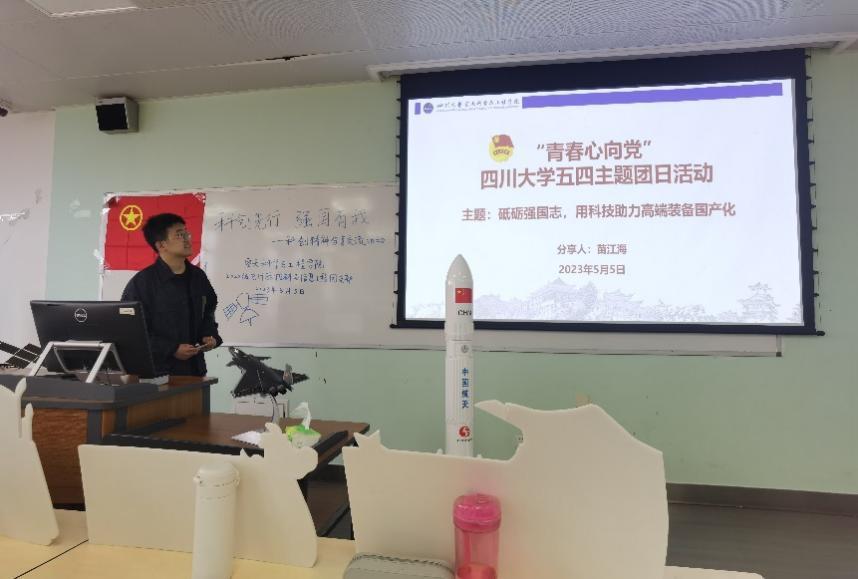 五四精神薪火相传,青春接力奋斗前行。5月5日上午,空天科学与工程学院江姐班举办“科创先行,强国有我”科创精神分享交流活动,邀请第十七届“挑战杯”全国大学生课外学术科技作品竞赛国赛特等奖团队成员苗江海作主题分享。学院党总支副书记兼副院长季袁冬、学生科科长兼团委书记马丽娜、教导员刘玲琍参加了本次活动,江姐班团支书蔡鑫宇主持活动。