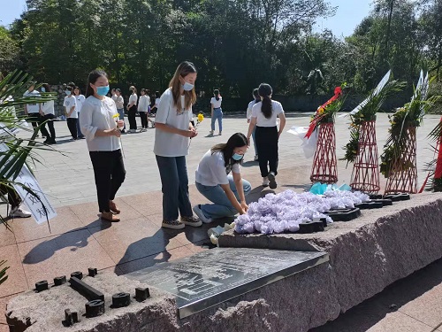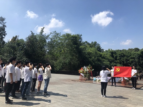 在中国壮士群雕广场,支部全体师生举行了祭英烈暨入党宣誓仪式。大家面向群雕低头默哀并敬献鲜花,表达致敬缅怀之意;同时,在支部书记的带领下,全体预备党员面向党旗进行宣誓,庄严承诺。学院本科第一党支部刘海颜同志还结合烈士纪念日的设立背景,分享了党史学习教育心得,呼吁同学们以史为鉴、不忘初心、勇于担当。
