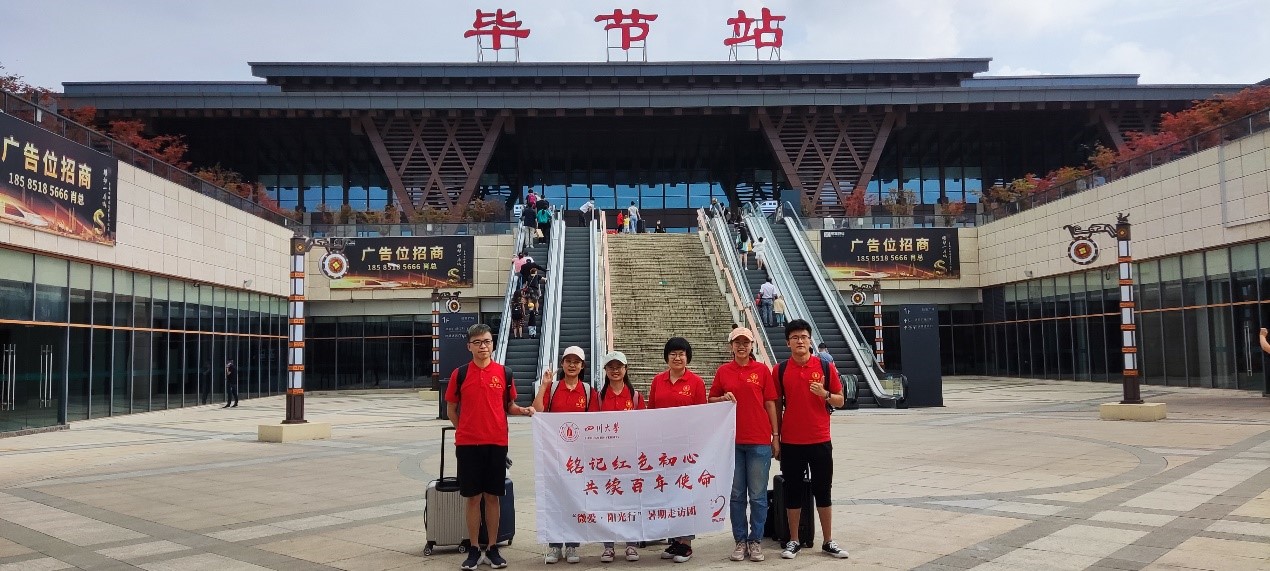 在本次走访活动中,化学学院“微爱·阳光行”暑期调研分队师生一行走访学习了毕节市大方县八堡爱国主义教育基地——八堡红军坟。在红军烈士墓前,团队师生们学习了新开村红军坟历史故事以及八堡红色文化介绍,在党旗下重温了入党誓词,表达了对红军烈士们的深深哀思和崇高敬意。今年是中国共产党建党一百周年,师生们要将红军精神和长征精神传承下去,为祖国的伟大复兴不懈奋斗!