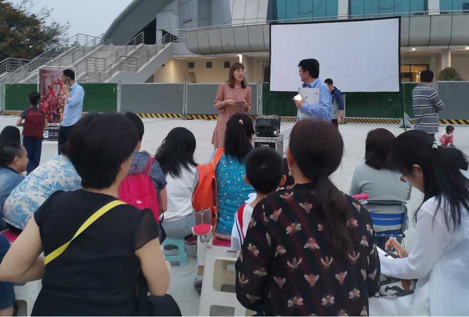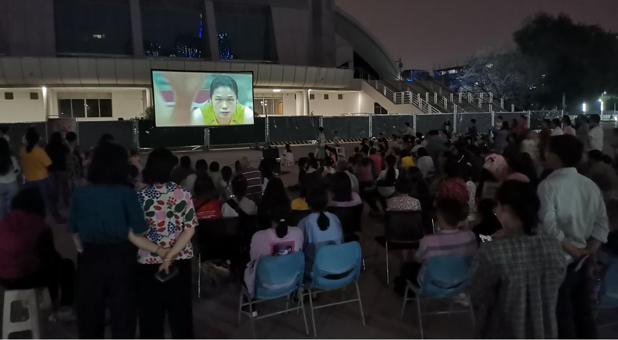 影片放映前,主持人简单的介绍了活动的初心以及电影《夺冠》的大致内容。“《夺冠》讲述的是女排崛起史,这是一部充满爱国主义情怀、闪烁着自强不息光芒的电影,它叙述的是中国女排的故事,传承的是女排精神,中国女排几代人不屈不挠,勇往直前,为国争光。不管是过去还是现在,她们都是中华民族的英雄,是我们永不过时的偶像。”整个观影过程中,大家都非常专注,随着女排姑娘的一次次起跳与扣球,观众的心也被一次次提到了嗓子眼;随着比分板上数字的跳跃,人群中更是不时爆发出叫好的喝彩声。整个故事非常精彩,从电影中,大家看到了中国女排这只传奇般的队伍的一次次成长与蜕变。“女排精神”,这个深深烙印在几代人的记忆里的图腾,如今就在这一片小小的广场再次蓬勃绽放!