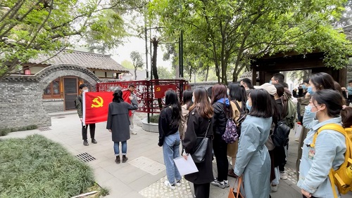 讲堂环节后,支部师生共同参观了江姐纪念馆。在讲解员的引导下,大家结合现场展出的文物和展映的影片,按照“苦难童年”“江姐在川大”“英勇就义”三个主题版块顺序依次参观,全面了解了革命英烈校友江竹筠同志的生平事迹,加深了对“江姐精神”的认知。尤其是她狱中托孤和与狱友们绣红旗的故事,令在场师生无比动容,更体悟到中国共产党领导人民从苦难走向辉煌的磅礴伟力,坚定了大家学习革命先辈崇高精神、争做又红又专时代新人的信念。随后,大家还参观了川大英烈厅,感受川大学人“治学”和“救国”的风采。