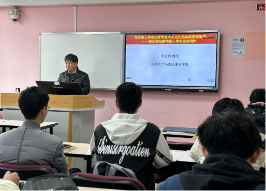 本次理论学习的主题为“马克思人类命运哲学思考在当代的实践逻辑阐释——兼论推动构建人类命运共同体”。邓老师围绕马克思对人类命运的哲学思考,系统阐述了其在当代社会的实践逻辑,他强调只有在真正的共同体中,个人才能实现自由全面的发展,这是构建人类命运共同体的理论起点。