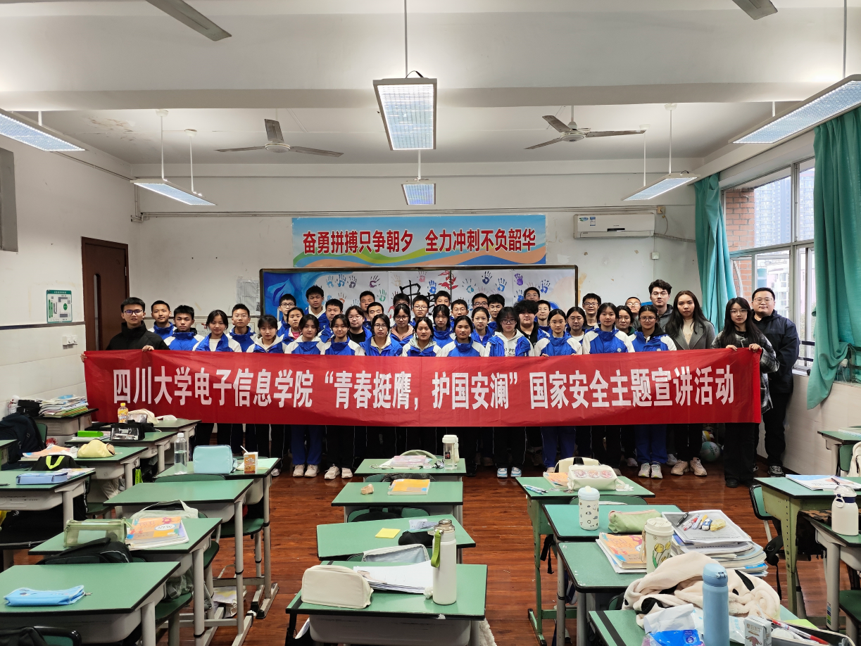 为筑牢国家安全保密防线,增强青少年学生的国家安全意识和保密观念,英国上市公司365百川青年学生宣讲团电子信息学院分团、电子信息学院“电子之鹰”青年宣讲团开展国家安全主题宣讲活动。首站走进成都华西中学,学院团委副书记、宣讲团指导教师申鑫、兼职辅导员杨婉丁以及宣讲团成员吴浩、易音彤、谭晶晶、马亦岑参加宣讲活动。
