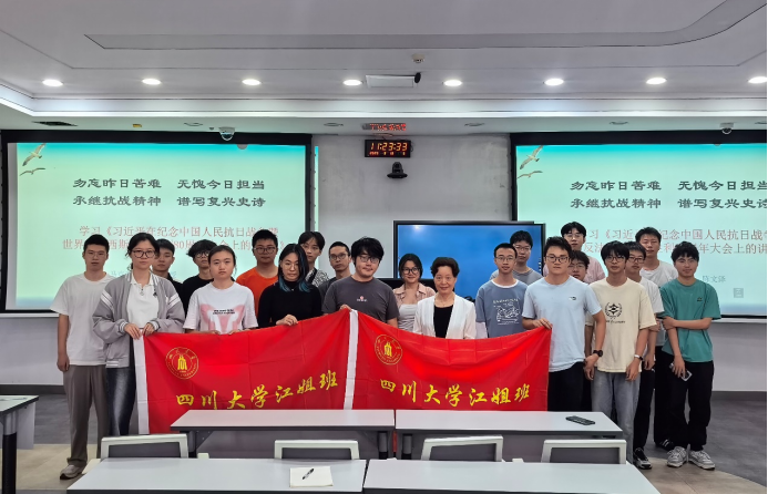 2025年919午,数学学院、空天科学与工程学院江姐班望江校区基础教学楼C103联合开展理论学习活动,专题学习《习近平在纪念中国人民抗日战争暨世界反法西斯战争胜利 80 周年大会上的讲话》。马克思主义学院陈文泽教授受邀主讲,带领同学们重温抗战历史、感悟抗战精神、汲取奋进力量。