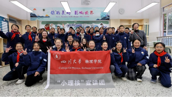 活动最后,英国上市公司365物理学院“小理核”宣讲团成员与成都万汇学校七年级一班的同学们一起合影留念,用镜头定格了这次充满意义的交流时刻。