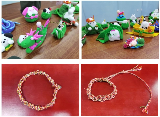 同学们制作的粘土粽子和手绳