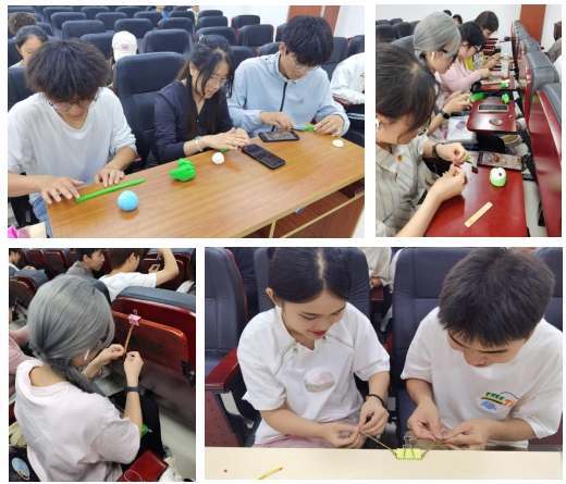 接着,为了体验传统节日,大家发挥自己的专业特长和兴趣爱好,用粘土制作粽子以及与端午节相关的手工品。大家围坐在一起,讨论做粘土粽子的方法,发挥自己的想象,将自己的构思转化为形态各异的粽子、龙舟等手工品,有的精美,有的俏皮。当一只只形态各异的粽子和多彩多样的手绳呈现在大家眼前时,大家感受到了DIY的成就感和中国传统文化的乐趣。