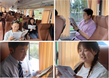 在前往目的地的大巴车上所有师生轮流领读《中共产党纪律处分条例》原文,真正把纪律规矩转化为政治自觉、思想自觉、行动自觉,使《条例》入脑入心,确保党纪学习教育永远在路上