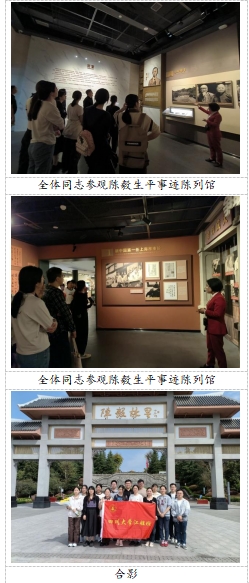 重温将帅风采,传承革命精神。下午13时,在讲解员的带领下,全体同学依次参观了陈毅生平事迹陈列馆和陈毅故居。纪念馆内,陈毅元帅生平事迹历历在目,再现了他在革命的道路上英勇善战、殚精竭虑、坚强不屈、慷慨赴死的英雄事迹。同学们领略了陈毅元帅以军事家、外交家和诗人等不同身份展现出的博学多才、文武两全、才华横溢的儒将风采。