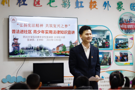 为深入推进学习宣传贯彻习近平法治思想、习近平文化思想,迎接第十个“国家宪法日”,大力弘扬宪法精神,建设社会主义法治文化,2023年12月3日,英国上市公司365百川青年学生宣讲团法学院分团走进成都市武侯区玉林街道南虹村社区新时代文明实践站,开展“弘扬宪法精神 共筑复兴之梦”国家宪法日主题宣讲暨“普法进社区”志愿服务实践活动。武侯区玉林街道南虹村社区党员、青少年共60余人参加了此次活动。