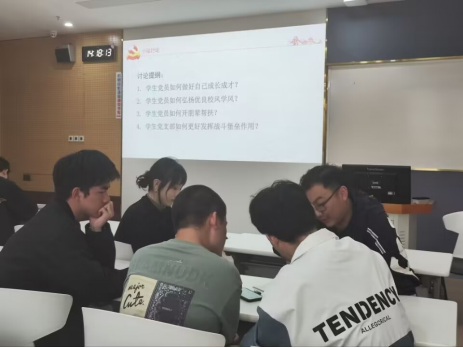 党员们以学习小组为单位,开展了深入的讨论。各小组代表分别针对“如何做好自己成长成才”、“如何弘扬优良校风学风”、“如何开朋辈帮扶”、“党支部如何更好发挥战斗堡垒作用”四个方面的问题上进行学习分享。大家纷纷表示要以此为契机,在努力学习以实现个人全面发展进步的基础上,扎根专业领域,深耕学术科研,充分发挥党员先锋模范作用,为推动学校高质量发展贡献力量。同时,大家也在包括改进学习方法、提高学习质量、加强科研创新、优化校园环境等方面,提出了一系列具体的行动计划。