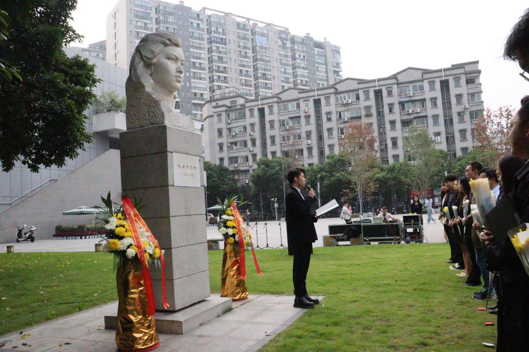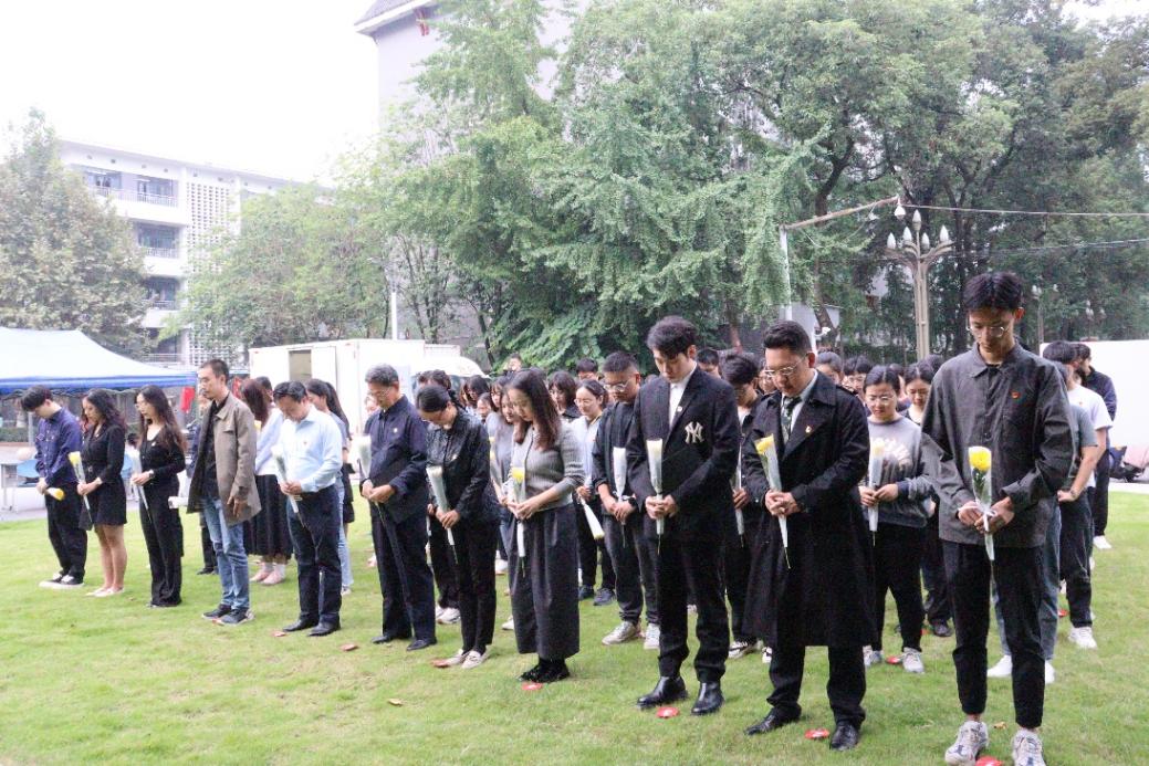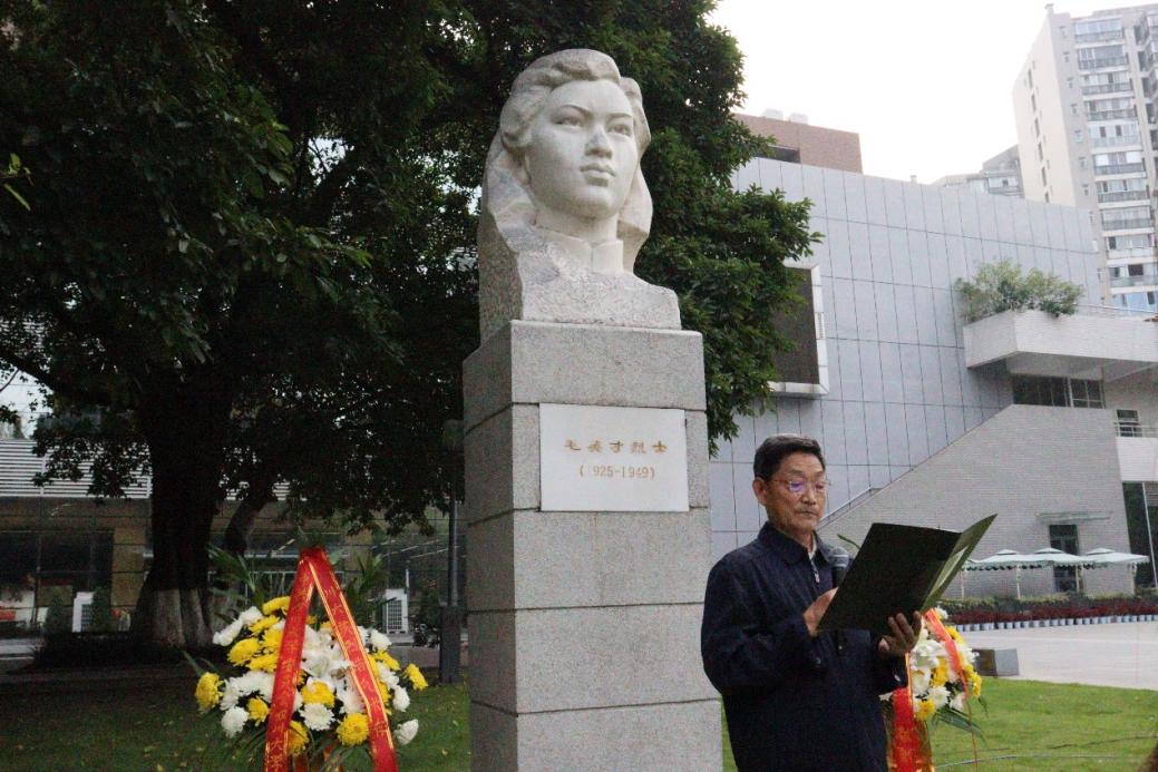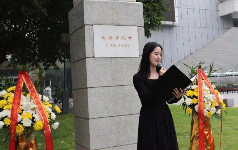 学校研工部、关工委教师代表以及本科生、研究生代表齐聚毛英才烈士塑像广场,缅怀革命先烈用生命和信仰书写的光荣历史,学习先辈筚路蓝缕、以启山林的崇高精神。毛英才烈士塑像前,全体师生手捧寄托哀思的黄菊,肃穆而立,齐唱国歌,向以毛英才烈士为代表的川大英烈、向为中国人民解放事业和国家建设事业英勇献身的烈士默哀,师生代表上前整理花篮缎带,表达川大师生最深切的追思与缅怀之情。