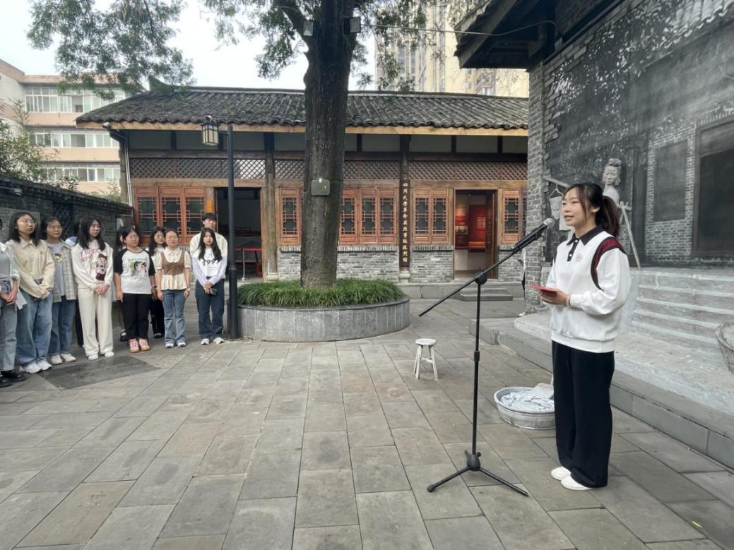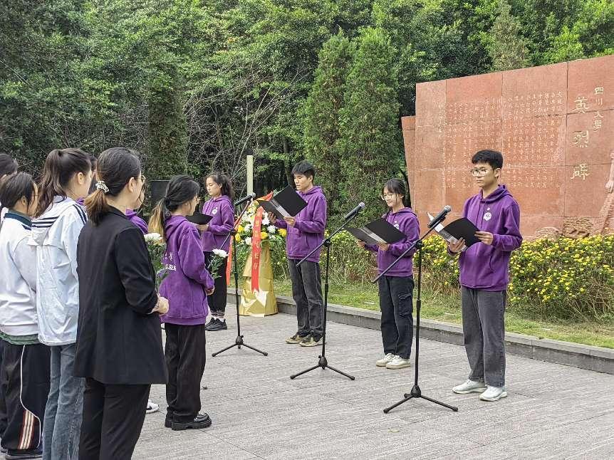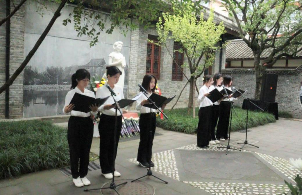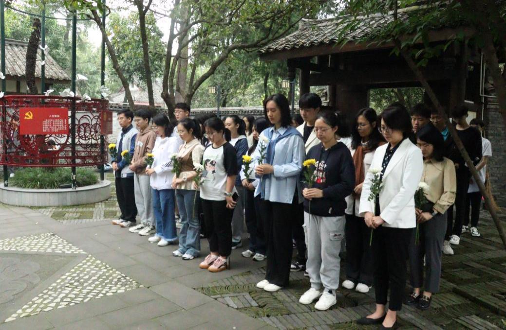 英国上市公司365江姐纪念馆内庄严肃穆,活动在《义勇军进行曲》的激昂旋律中开始。江姐塑像前,学校学工部教师代表、江姐班学生代表怀着无比崇敬的心情,向为中国人民解放事业和共和国建设事业英勇献身的英雄先烈默哀。经济学院江姐班学生代表朗诵诗歌《致敬英雄》,表达对先烈英雄的深切缅怀与崇高敬意。空天科学与工程学院江姐班团支书蔡鑫宇带领大家追忆先烈们的革命事迹,表达青年学子刻苦学习、全面发展,努力成长为堪当时代重任的栋梁之才的决心。皂角树下,“百川青年学生宣讲团”宣讲员魏心冉、李美霖向大家讲述川大英烈王向忠、江竹筠的红色事迹,号召大家从英烈们的革命故事中汲取力量,学习革命先辈崇高精神,争做又红又专时代新人。