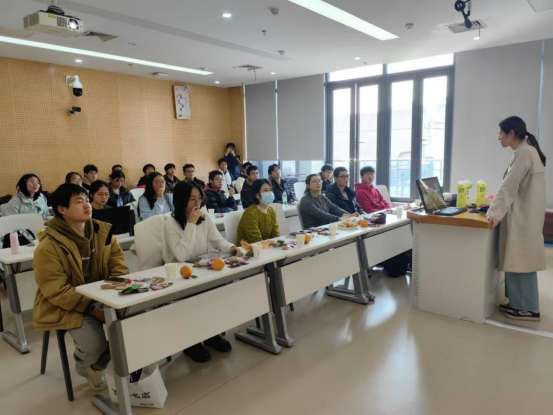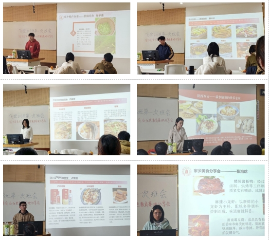 在舌尖上的美食汇环节,同学们分享了各自家乡的美食。当教室化作流动的中国版图,同学们以味觉为媒,铺陈开一幅生动的文化长卷。晋中太谷饼的酥香与信阳毛尖的馥郁茶香交织,泸州黄粑的软糯同西安蓼花糖的甜蜜共鸣。来自云贵高原的鲜花饼与烤鱼、江南水乡的马蹄酥、中原大地的撒汤等二十余种特色美食,不仅是地域风物的集中展示,更成为情感交融的文化信使。师生们在分享中解码乡愁记忆,于谈笑间筑起心灵桥梁。