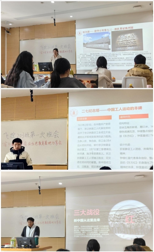 在红色基因传承环节,江姐班全体学子带着对故土的深情凝视,逐一登台讲述家乡红色圣地的时代回响。班长刘峪来展示的哈尔滨731部队罪证陈列馆影像,让泛黄的史料化作警世洪钟;杜帅康描绘的二七纪念塔双体联塔造型,将“东方红”旋律熔铸为工人运动的时代图腾;宋刘洪烨重走西柏坡的见闻,将七届二中全会“两个务必”的谆谆告诫化作新时代的奋进密码。