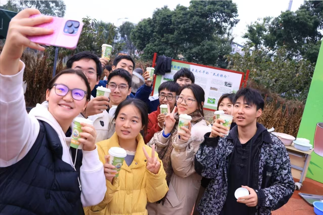 一杯杯香醇的现磨豆浆来自近千名同学们从打豆、研磨、煮浆、滤渣全过程的实地劳作。有机、纯天然的黄豆原料也是同学们“种豆得豆”的劳动果实。除定制版暖心豆浆外,还有现场制作的嫩豆花、豆腐,邀请师生一同尝鲜。