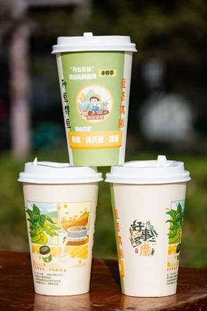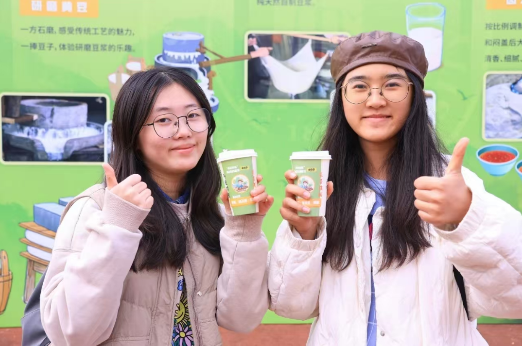 本次活动还专门设计了定制版豆浆杯,记录黄豆从播种、采收、磨豆浆的全过程。“好事多‘磨’”的寓意,更是让豆浆杯成为了同学们爱不释手的新宠。在一颗颗豆子变成一杯杯豆浆的全过程劳动中,同学们感受到食物从田园到餐桌的“粒粒皆辛苦”和一捧黄豆在传统工艺下的“七十二变”。