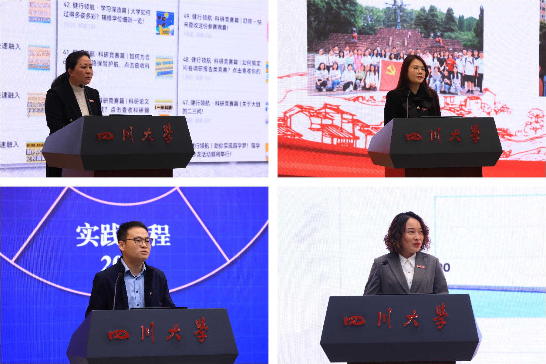商学院吴笑、物理学院吴海英、建筑与环境学院王天泽、华西临床医学院伍艳等四位模范辅导员代表分别围绕促进学生成长成才、研究生党建、学生创新能力培养、导辅协同育人机制构建等主题进行了大会交流。