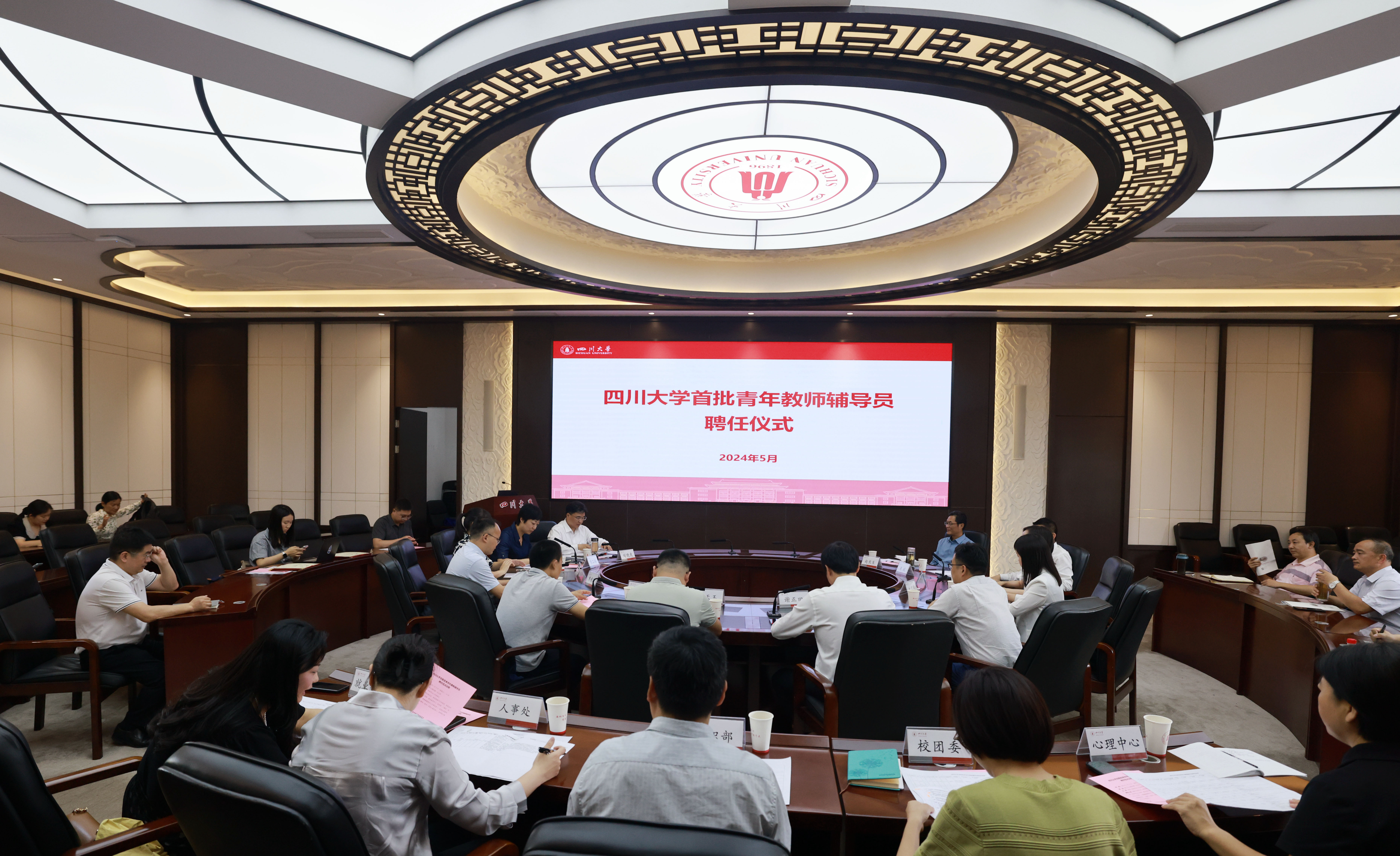 5月31日,学校首批青年教师辅导员聘任仪式在望江校区明德楼举行。副校长赵长生、校党委副书记刘晓虎,党委组织部、党委学生工作部、人事处、研究生工作部、校团委、就业指导中心、心理健康教育中心及各学院相关负责人,首批青年教师辅导员参会。聘任仪式由党委学生工作部部长熊伟主持。