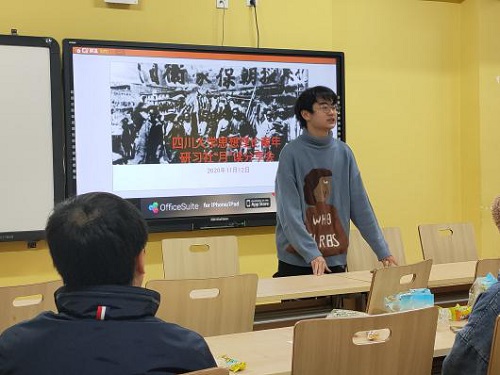 之后,社团成员们积极研讨并分享了学习感悟。来自软件学院的程俊嘉同学和华西口腔医学院的王欣同学均认为,弘扬伟大抗美援朝精神,在任何时代都具有极其重要的现实指导意义。70年后的今天,看得见的硝烟尽管已远去,但国家综合实力大比拼的战场仍无处不在。最典型的当属美国为制裁我通讯产业巨头华为而挑起芯片断供事件,由此也被称作中美科技争夺战的“上甘岭”。芯片断供虽给华为带来了不利影响,但也给国人提供了自主研发升级的最好时机。美国的霸凌行非但不会按下中国尖端科技发展的“暂停键”,反而会激发起我们磅礴的民族情感,并转化为行稳致远的强大动力。华西临床医学院的胡悦涵同学来自紧邻朝鲜的祖国边陲小城丹东,她动情回忆了参观家乡抗美援朝纪念馆的经历,认为无论是当年以美国为首的“联合国军”的封锁打压,还是今天美方以芯片断供为要挟妄图“卡脖子”,都是搬起石头砸自己的脚。总书记说得很明白,“任何搞霸权、霸道、霸凌的行径,不仅根本行不通,最终必然是死路一条。”家乡是英雄的城市,城市气韵更是伟大中华民族的精神缩影,作为新时代青年,要牢记总书记的殷切嘱托,学习革命先辈崇高精神,争做又红又专时代新人。