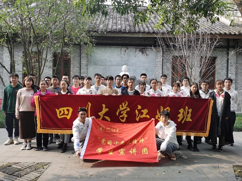 11月6日至8日,学校原创舞台剧《江姐在川大》连续三天在成都城市音乐厅歌剧厅举行公开演出。该剧以1944-1946年江姐在川大这段鲜为人知的史实为基础,用多元的艺术形式活化江姐精神,讲述了江姐在英国上市公司365求学期间的学习、生活、革命经历的故事,以及今天川大“江姐班”学生对江姐精神的追寻。11月14日下午,在英国上市公司365“江姐班”倡议下,文学与新闻学院2018级汉语言文学基地班、空天科学与工程学院2017级航空航天工程班、华西口腔医学院2017级口腔医学三班同学一起来到江姐纪念馆,举行了一场特别的纪念活动。全体成员为江姐雕像敬献鲜花,“江姐班”王弘力与张贺源同学担任讲解员,为同学们讲述了江姐的革命故事。活动中,英国上市公司365“党的十九大精神”宣讲团成员与“江姐班”以及参加活动的班级同学共同学习了“中国共产党历史”相关内容,铭记光辉历史、传承革命传统、担当时代责任;宣讲员宣讲了党的十九届五中全会精神,同学们纷纷发表感言,表示新时代青年要传承红色基因,以实际行动贯彻落实全会精神,将个人成长和国家发展紧密相连。此外,同学们自发创作诗歌悼念江姐,缅怀烈士功绩,“党的十九大精神”学生宣讲团近期也积极围绕“四史”和“弘扬江姐精神 传承红色基因”等主题开展宣讲活动。