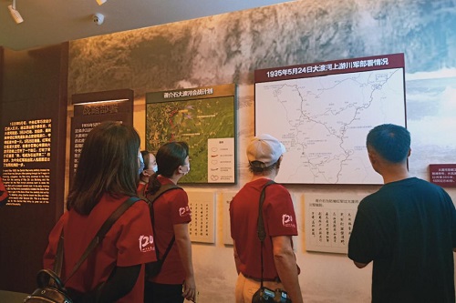 在安顺场强渡大渡河遗址广场的英雄丰碑旁,宣讲团党员同志们庄严肃立,重温了入党誓词。安顺场不仅是太平天国翼王石达开的陨落地,更是长征中为红军打开通往胜利之路的转折地。在“中国工农红军强渡大渡河纪念馆”和“太平天国翼王石达开历史陈列展”的对照参观和学习,师生们收获了“旗帜引领方向、核心事关存亡、理论开辟道路、意志激发力量、初心赢得民心、勇士铸造辉煌”六大启示。在磨西红军长征陈列馆,讲解员解读了当年红军围绕抢占泸定桥重大决策部署的“磨西会议”,从大渡河、泸定桥等地理环境以及馆陈文字、图片、模型等所传递的长征红色记忆中,师生们全方位感知了那段峥嵘岁月。在泸定县,师生们实地走上泸定桥,感受红军将士们当年“飞夺泸定桥”的大无畏革命英雄主义气概。大家怀揣着崇高的敬意,向红军飞夺泸定桥纪念碑鞠躬致意,深切体会到中国共产党人带领人民建立新中国、开辟新时代的正义性和必然性。