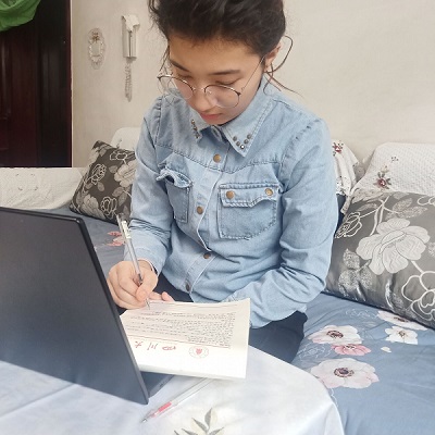 (阿丽米热·阿里甫同学在家学习习近平总书记重要回信精神并写感想)