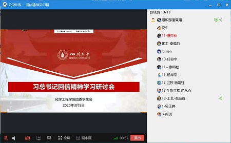 (化学工程学院分团委学生会组织QQ电话会议学习习近平总书记重要回信精神)