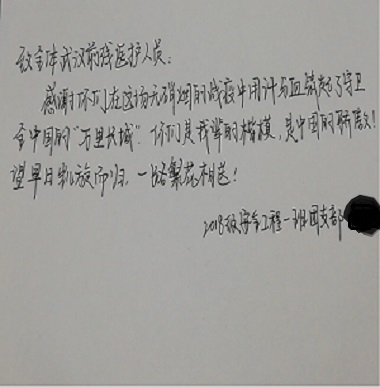 (化学工程学院学生写下对全体前线医务人员的祝福)