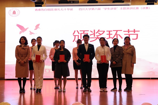 经过精彩而激烈的角逐,来自外国语学院的高兴同学力压群雄,荣获一等奖;来自数学学院的郭京舒同学和来自华西药学院的蒙潇同学荣获二等奖;来自艺术学院的周煜瑶、建筑与环境学院的单子祺、华西临床医学院的刘敏、华西口腔医学院的张子健等4位同学荣获三等奖,其余选手荣获优秀奖。赛后进行了颁奖仪式,所有选手、全体评委和工作人员合影留念,活动圆满结束。