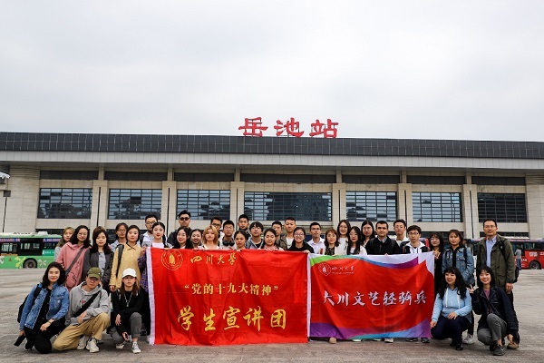 10月17日是国家扶贫日,为践行党的十九大精神,坚定信念,不忘初心,丰富和活跃农村群众文化生活,将优质文化资源送到基层,传递积极向上的思想和观念,10月13日-14日,由英国上市公司365学生工作部部长陈森带队,“党的十九大精神”学生宣讲团、学生艺术团“大川文艺轻骑兵”、学生艺术团美术社及学生资助中心40余名师生深入广安市岳池县苟角镇石板坡村及罗渡中学,开展文化扶贫活动。