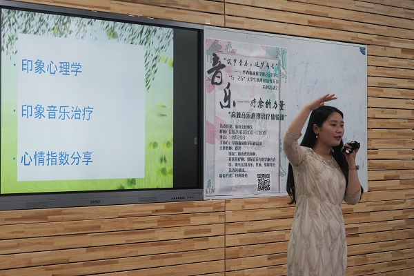 5月24日下午,学院邀请国际音乐与医学协会会员、国际NGH催眠治疗师、国家二级心理咨询师邓茂老师,于江安校区第一教学楼D座203教室,为同学们带来了一堂别开生面的“音乐——疗愈的力量”高雅音乐心理治疗体验课。邓茂老师以音乐为载体,向同学们介绍了音乐在临床心理治疗中的辅助应用,并与大家一同体验了松弛疗法的独特魅力。现场氛围轻松愉悦,大家热情满满。