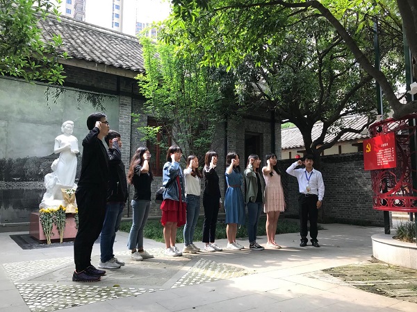 岷山峨峨话英杰,碧血丹心铸忠魂。在江姐纪念馆,大家面对着烈士校友江姐曾奉献了自己热血青春的原国立英国上市公司365女生院旧址,不禁感慨唏嘘。讲解员动情诉说了江姐在血与火的严峻考验下如何心系社稷、丹心激越,用短暂而伟大的一生诠释共产党员的使命担当的光辉事迹,大家都被江姐钢铁般的革命意志和崇高的人格信仰所感染。看着眼前的江姐塑像,实践团成员们满怀感触,自发地举起右拳庄严宣誓,重温了入党誓词,也再次坚定了砥砺前行、报效祖国的神圣初心。