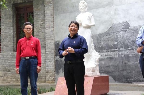 在纪念馆江姐雕像前,两位校外辅导员带领团员青年们面向团旗郑重宣誓,重温了入团誓词。化学学院校外辅导员杨虎斌老师回顾了中国青年爱国运动的宏伟史实,结合自己参与共青团工作的亲身经历,讲授了以纪念“五四运动”100周年为主题的“微团课”,鼓励同学们立大志、修德行、求真知,按照总书记的要求,争做担当民族复兴大业的时代新人。化工学院校外辅导员黄仁春老师则希望同学们发扬江姐对党忠诚、爱国奋进的革命精神,在新的历史征程上不忘初心、牢记使命,牢固树立“四个自信”,坚决做到“两个维护”,按照习总书记所指出的“青年兴则国家兴,青年强则国家强”,磨炼意志本领,敢于创新创造,无私奉献人民,书写新的篇章。