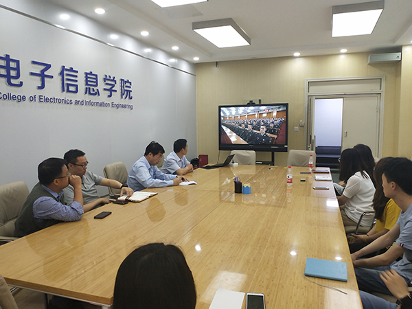 为进一步推进整改学院党风建设,落实推进全面从严治党工作,以良好的面貌迎接新中国成立70周年,2019年4月30日,电子信息学院在望江校区基础教学楼A座303室举行了全面从严治党大会。学院党委书记邰明松、院长冯国英教授、党委副书记陈笃海和研究生各党支部书记、教师代表共同出席并参加会议。会议由陈笃海副书记主持。