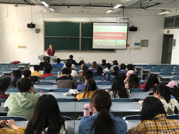 在接下来的环节中,化学工程学院团委组织部潘夏爔同学为在场团支书详细地讲解了如何开展“青年大学习”、“三会两制一课”制度等基层团组织生活,并传达了近期工作安排。