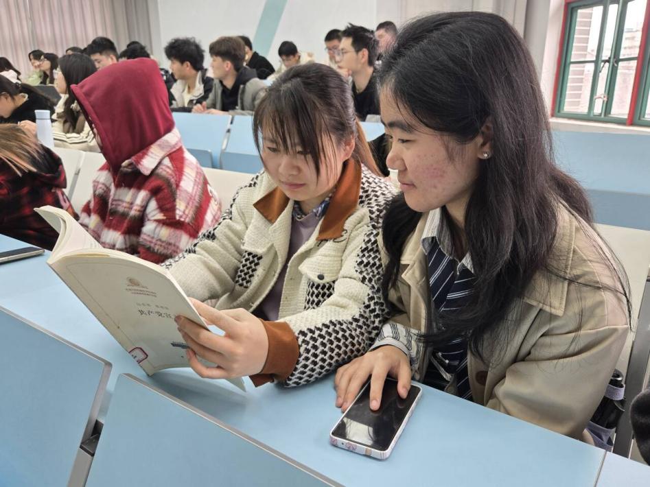 “书声朗朗”读书分享活动由“青马工程”弘毅班第十七期学员颜子彤同学担任主讲人,她以毛泽东同志的《实践论》为核心,结合公共卫生学科特色,深入剖析了认识与实践辩证统一的哲学内涵。颜子彤同学分享道,公共卫生事业需要扎根实际、服务人民,《实践论》中“知行合一”的理念正是我们未来职业发展的行动指南。随后,同学们共同传递阅读《毛泽东选集》与《共产党宣言》经典篇章,围绕理论与实践的关系展开热烈探讨。