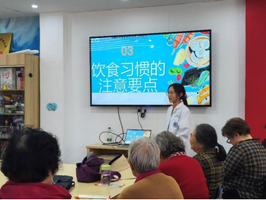 三位同学为社区老年人详细介绍了营养搭配指南、饮食习惯注意事项及高血压患者的饮食原则,倡导老年群体改善不良饮食习惯,提升身体素质,促进身体健康。