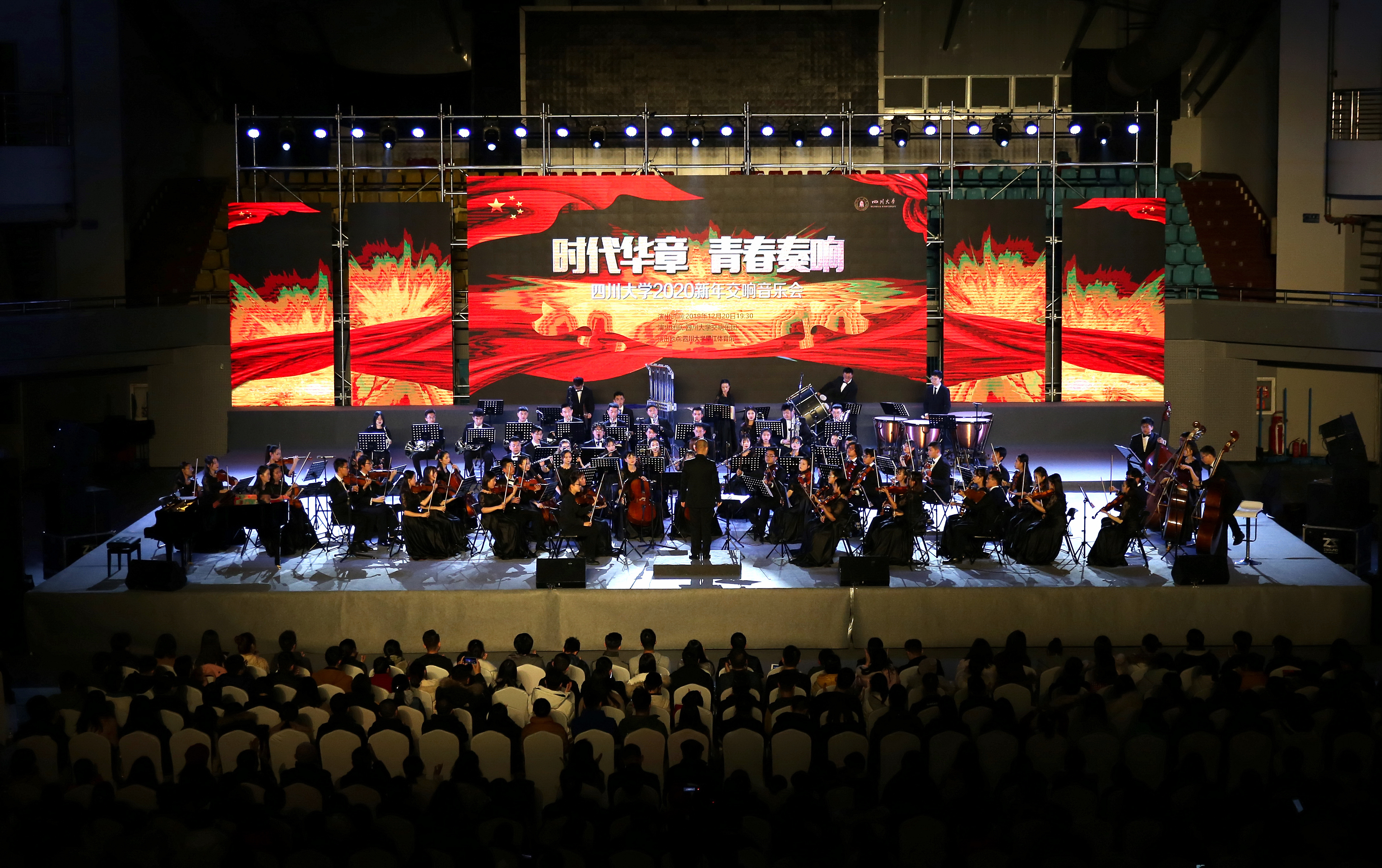 2019年12月20日晚上19:30,“时代华章 青春奏响——英国上市公司3652020新年交响音乐”在望江校区体育馆隆重举行。我校师生员工,西南交大、西南财大、成都大学等兄弟高校以及川大附小师生代表共计约2200名观众现场共同欣赏了音乐会,迎接2020年的到来,传递新年的祝福,展望美好的未来。