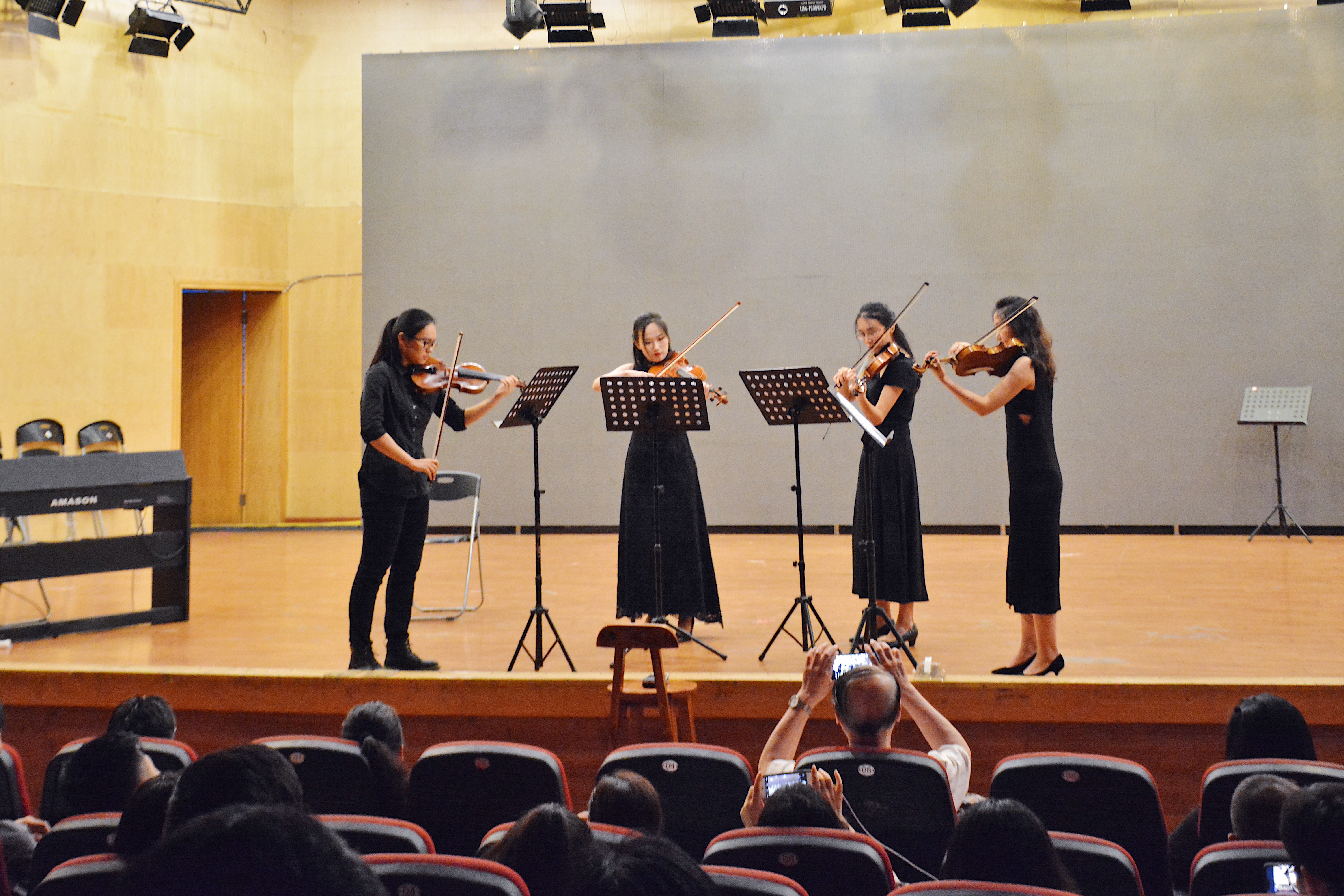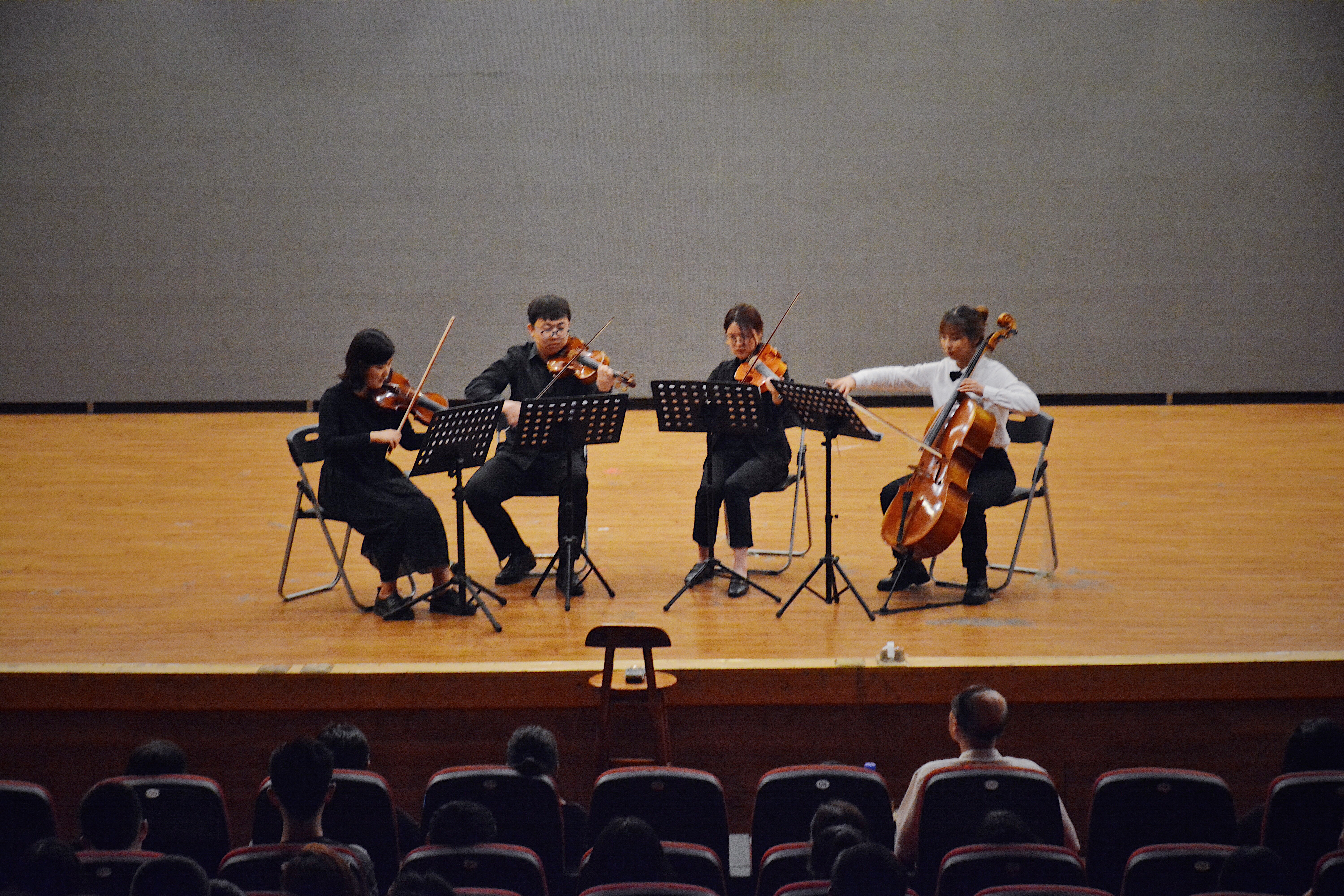 音乐会伴随着贝多芬《升c小调弦乐四重奏》的旋律正式开始,首次担任一提琴的刘瑞佳同学说:“这首作品在节奏、音准上要求很高,所以我每天都会多挤一两个小时来练琴。”尽管有些紧张,但她对自己的一提琴“首秀”表示满意,“这给了我展示的机会,同时也让我的演奏技能得到了充分的锻炼和提升。”