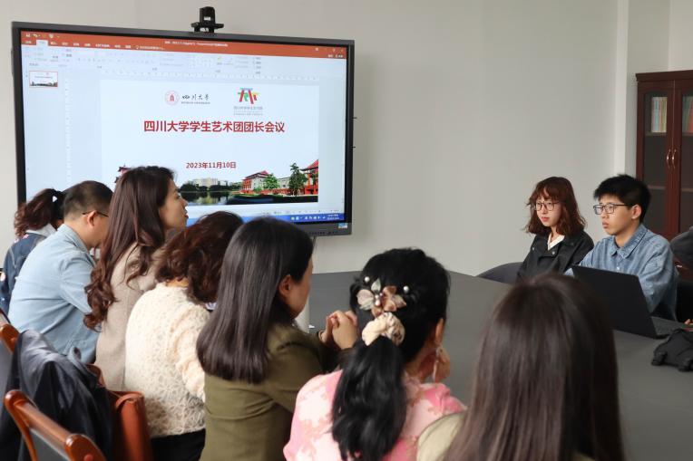 会议伊始,王月琳老师对学生艺术团的组成及各部门职能进行了简要介绍,各位艺教中心老师和同学们分别进行了自我介绍。