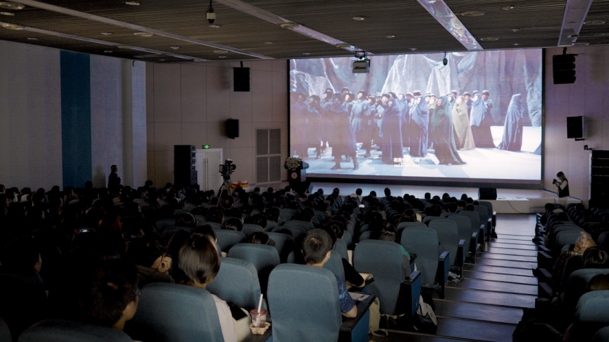 在观影环节,现场师生跟随着跌宕起伏的剧情一起走进高雅艺术,共同领略歌剧电影的魅力。来自艺术学院2020级的曹彤彤同学表示,观看《冰山上的来客》感到非常震撼和感动。这部歌剧传达了坚定的信念,只要各族人民团结一心,就能够克服困难,迎来美好的未来。