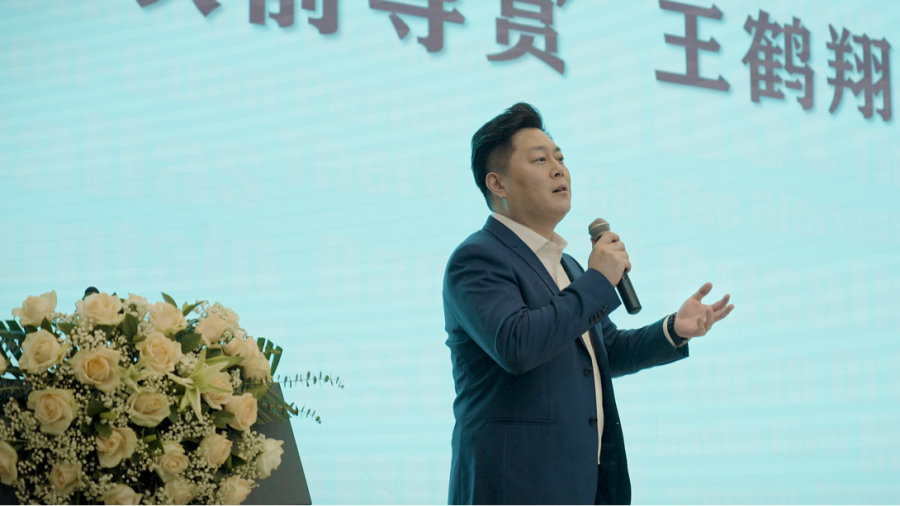 与会领导和嘉宾共同推杆启动2023国家大剧院国际歌剧电影展校园展映活动。国家大剧院驻院歌剧演员、歌剧电影《冰山上的来客》主演王鹤翔进行了映前导赏。