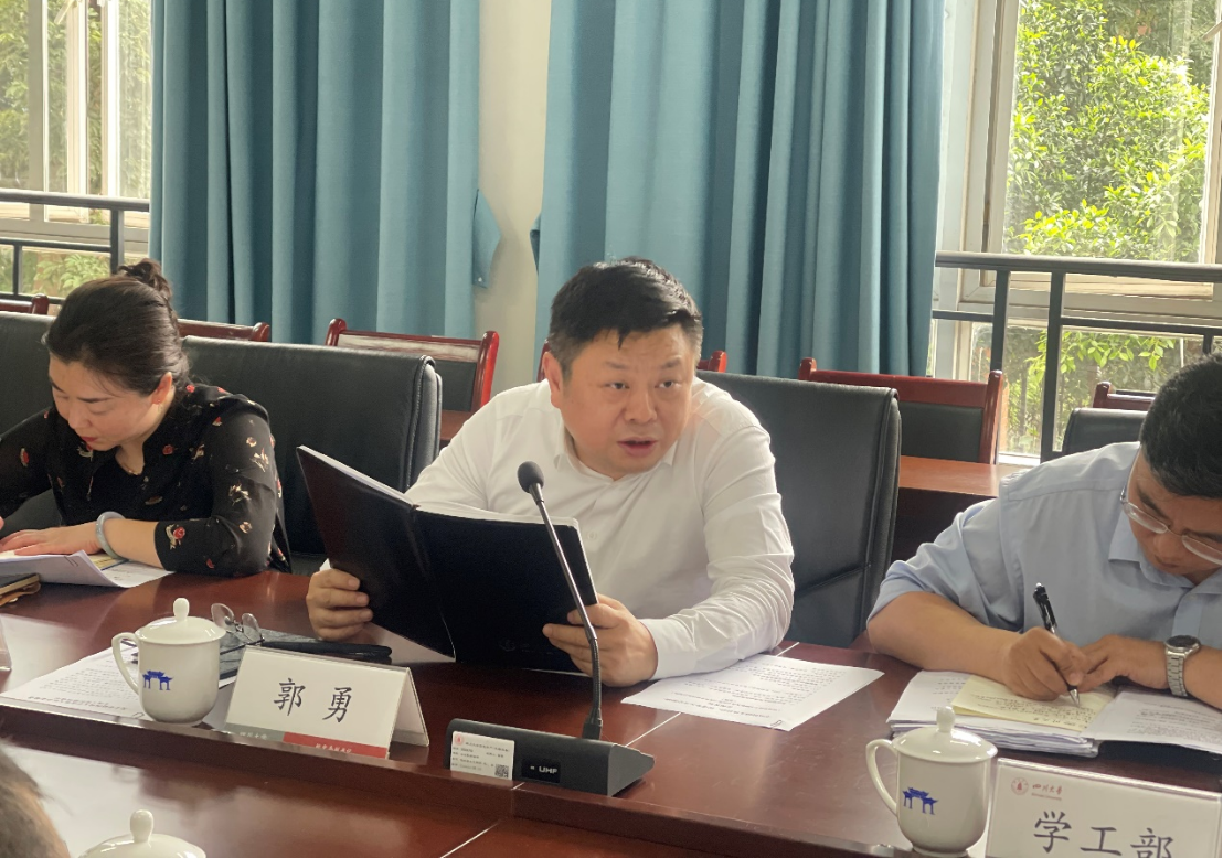 5月15日下午,校党委副书记郭勇组织召开“校园文化活动促进学生全面发展的作用发挥”专题调研会,宣传部、学工部、校团委、教务处、研工部、图书馆相关负责同志,文新学院、艺术学院、历史文化学院、生命科学学院、轻工科学与工程学院、华西临床医学院、体育学院等学院代表参加调研座谈。